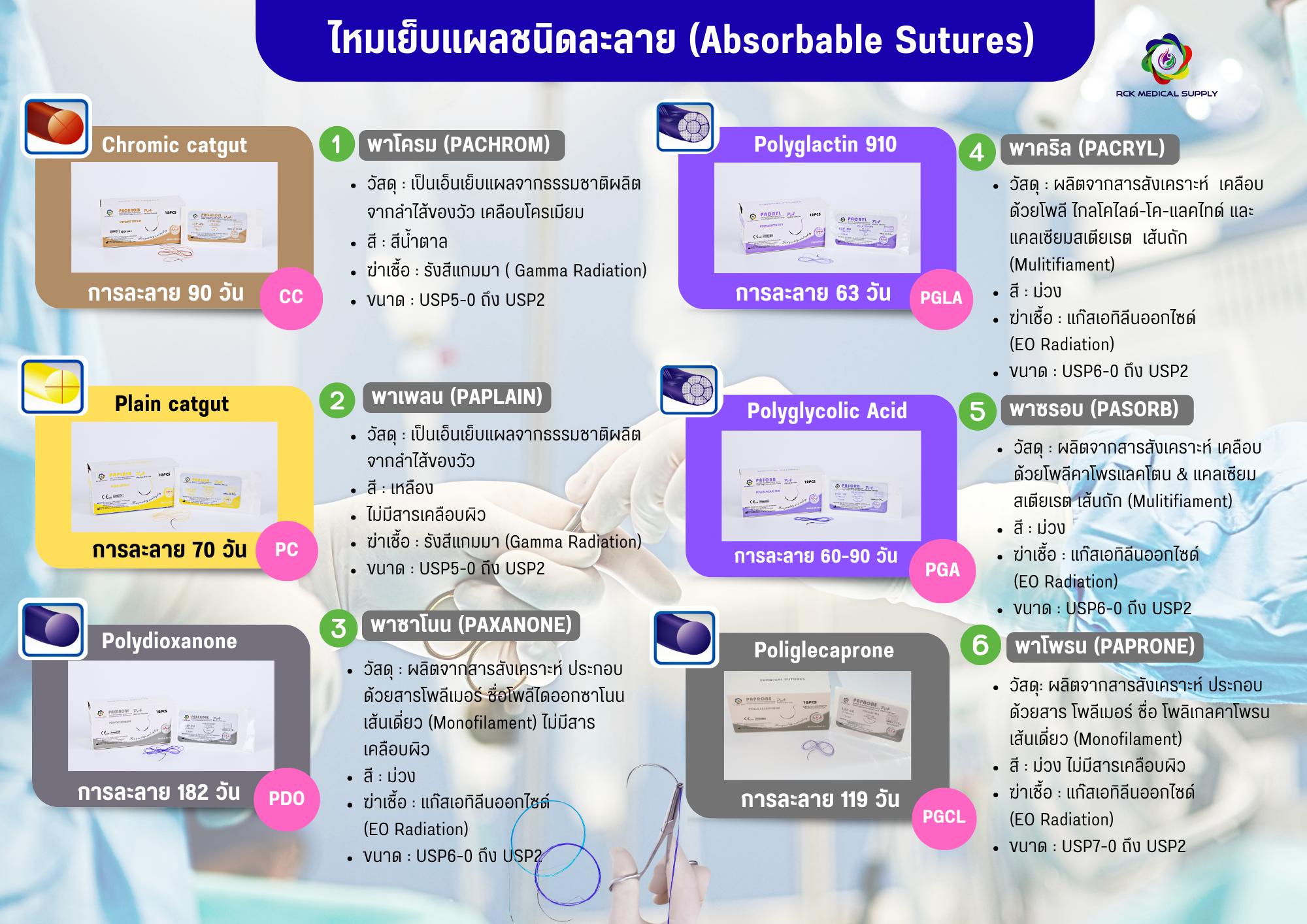 ไหมเย็บแผล PASORB (Polyglycolic Acid) เป็นวัสดุเย็บแผลผลิตจากสารสังเคราะห์ เคลือบด้วยโพลีคาโพรแลคโตน & แคลเซียมสเตียเรต(Polycaroplactone & Calcium stearate) เป็นแบบถัก ชนิดละลายได้ มีสีม่วง แบบไม่มีเข็ม