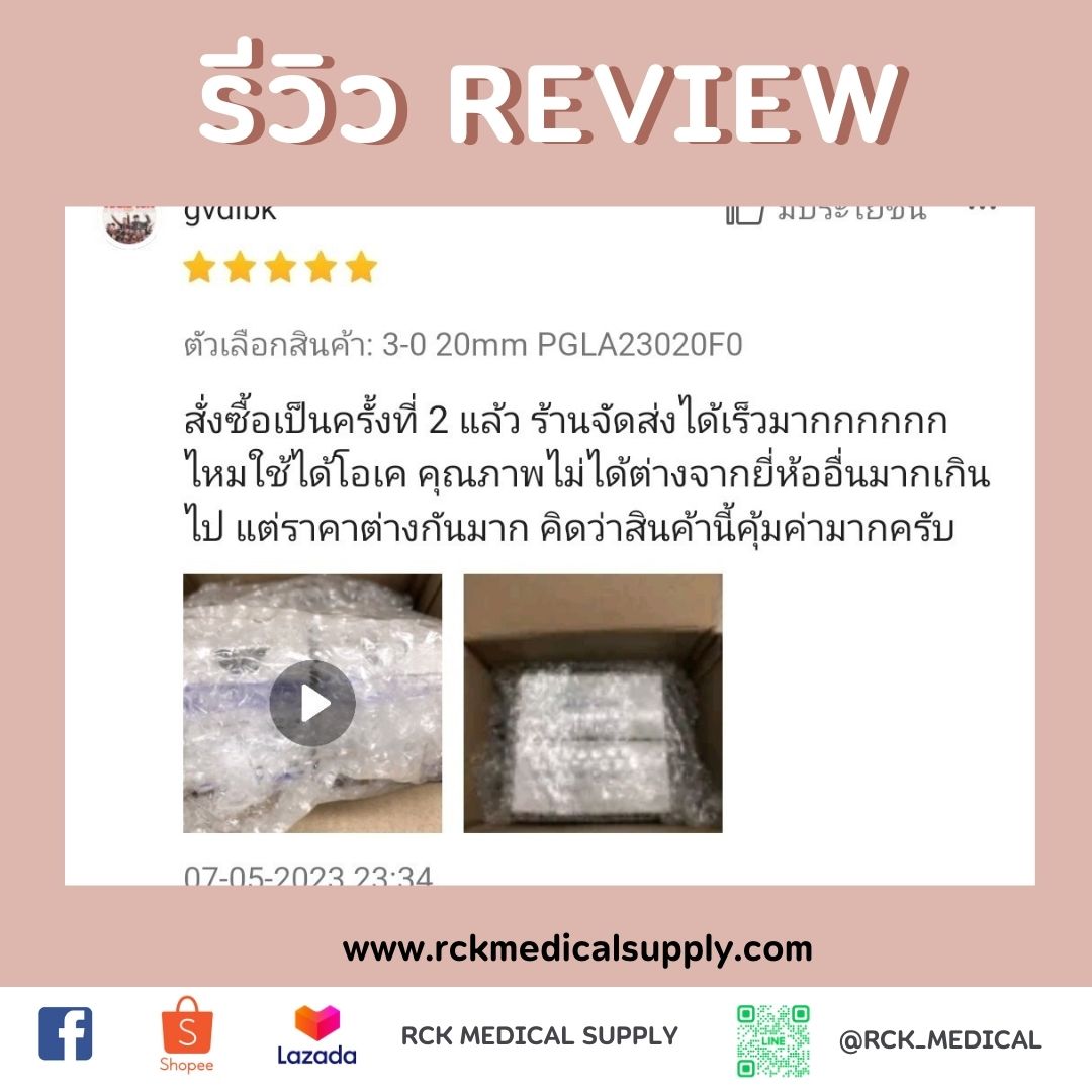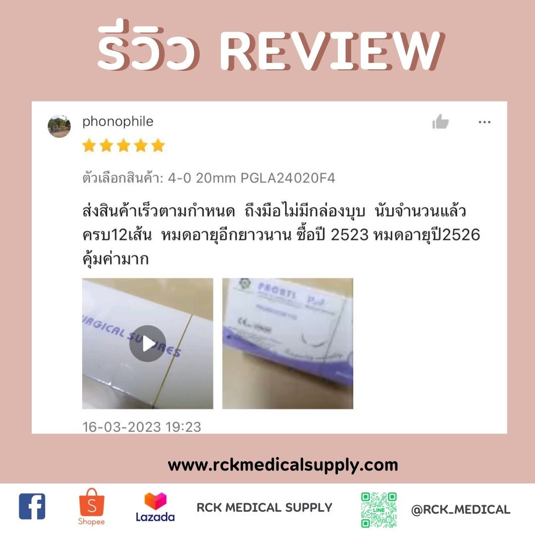 เคลือบด้วยโพลี ไกลโคไลด์-โค-แลคไทด์ และแคลเซียมสเตียเรต (Poly glycolide-co-lactide & Calcium stearate) เป็นแบบถัก ชนิดละลายได้ มีสีม่วง แบบมีเข็ม มี อย.รับรอง