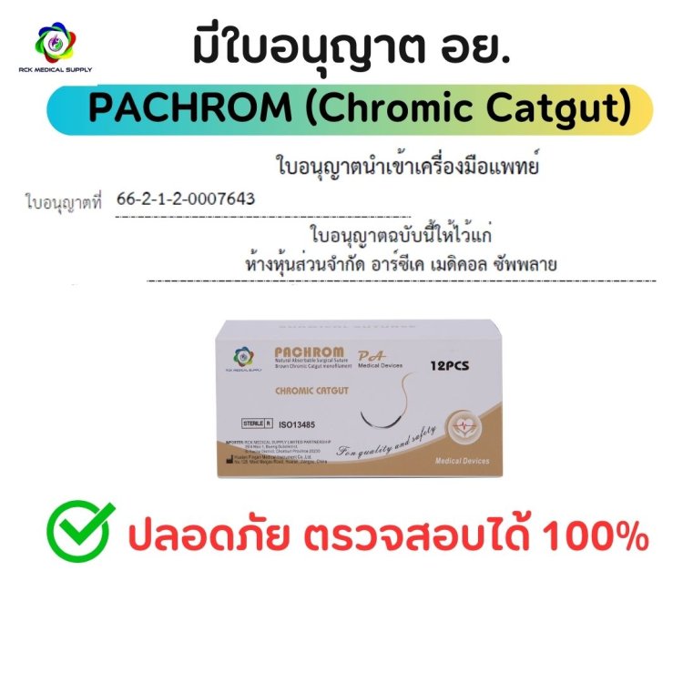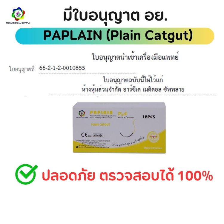 เป็นเอ็นเย็บแผลจากธรรมชาติผลิตจากลำไส้ของวัว ชนิดละลายได้ แบบมีเข็ม มี อย รับรอง