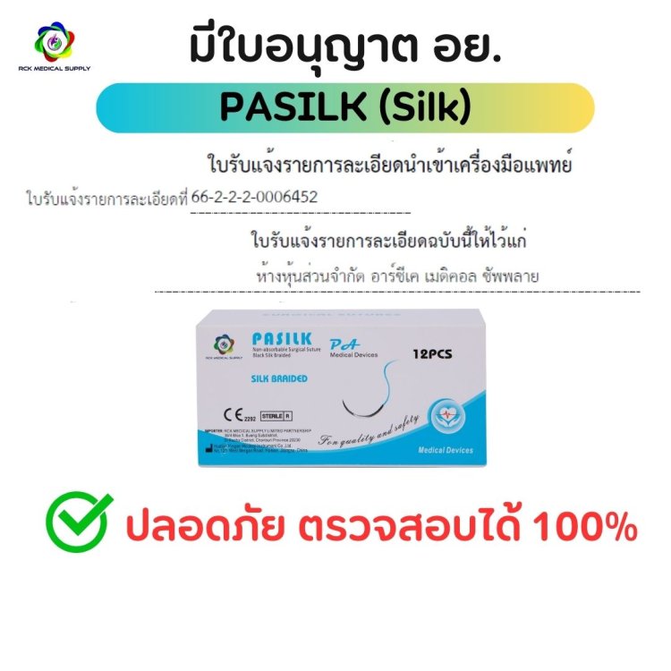 Silk ไหมเย็บแผลจากธรรมชาติ แบบเส้นถัก (multiflament) ชนิดไม่ละลาย มีสีดำ แบบไม่มีเข็ม
