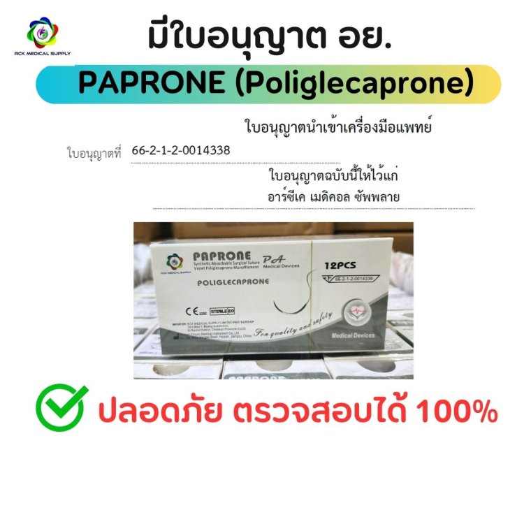sutures with are sterile absorbable synthetic sutures. has non-antigenic and non-pyrogenic. The sutures are monofilament PAPRONE* Poliglecaprone (PGCL) complies with the requirements of United States Pharmacopoeia (USP) for synthetic absorbable surgical suture and European Pharmacopoeia (EP) for sterile synthetic absorbable surgical suture