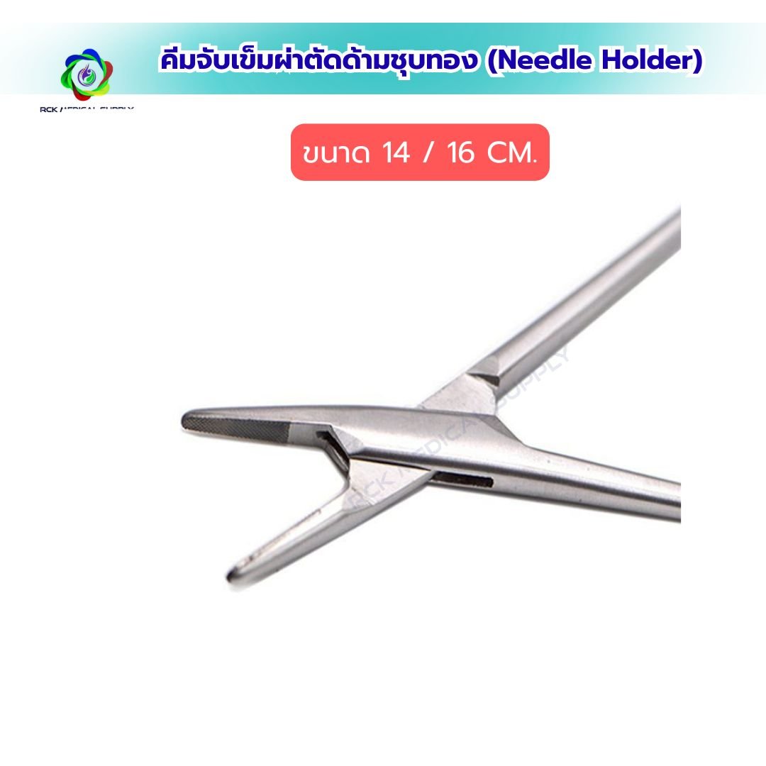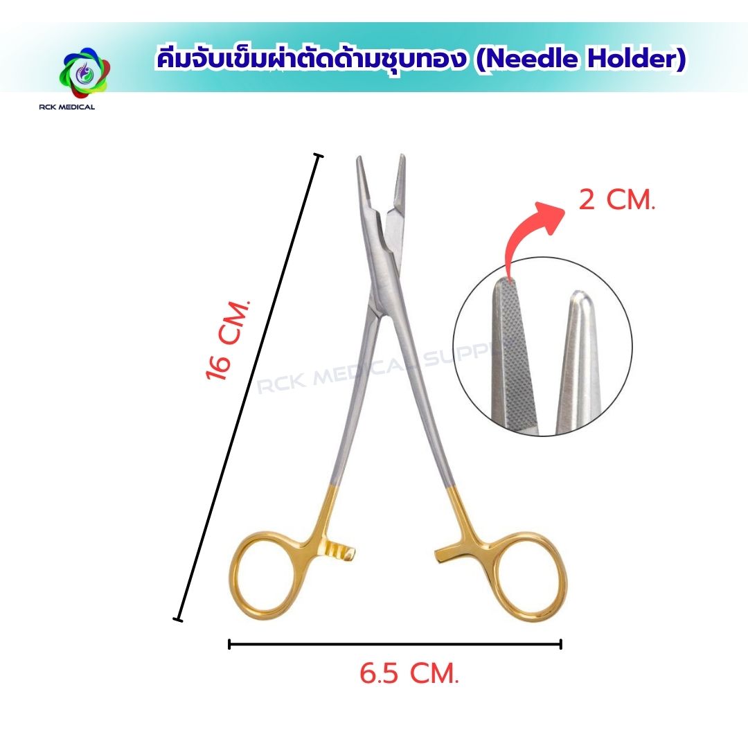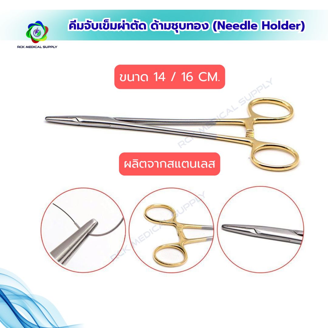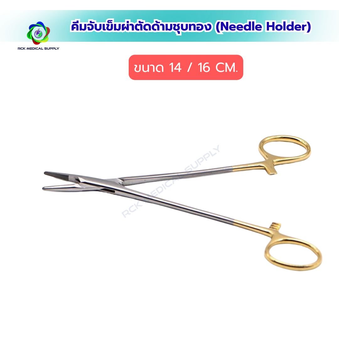 คีมจับเข็มผ่าตัดด้ามชุบทอง (Needle Holder) สแตนเลส ขนาด 14 / 16